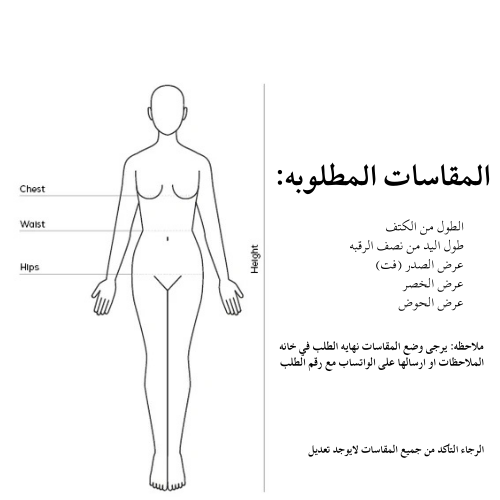 الرجاء اضافة المقاسات في الملاحظات نهاية الطلب