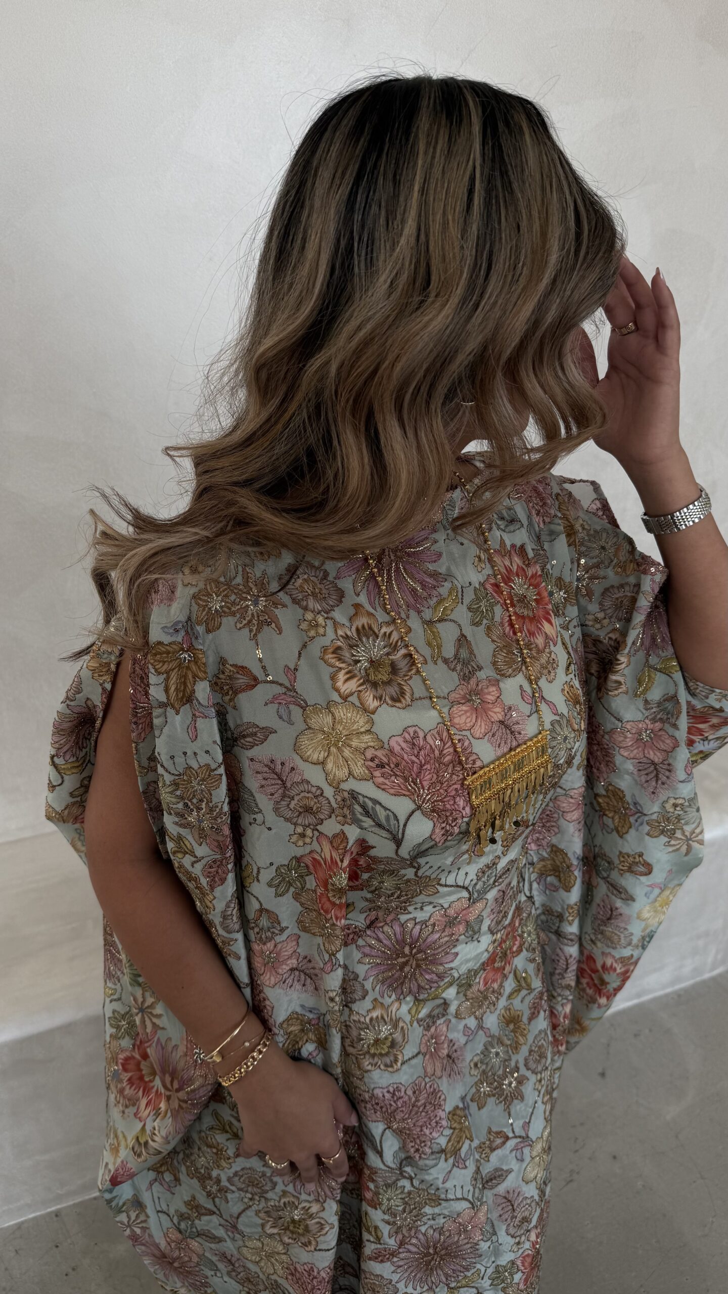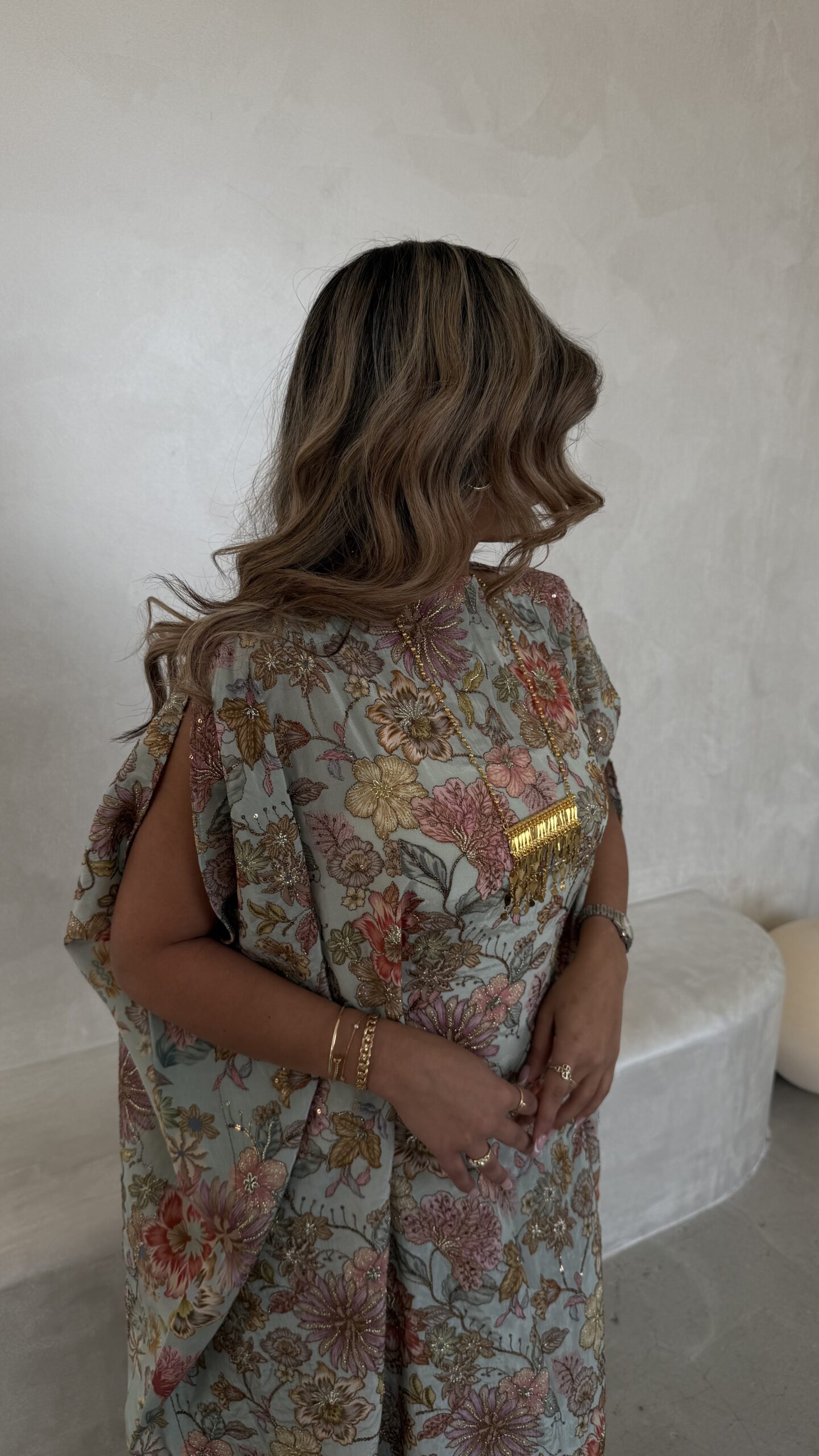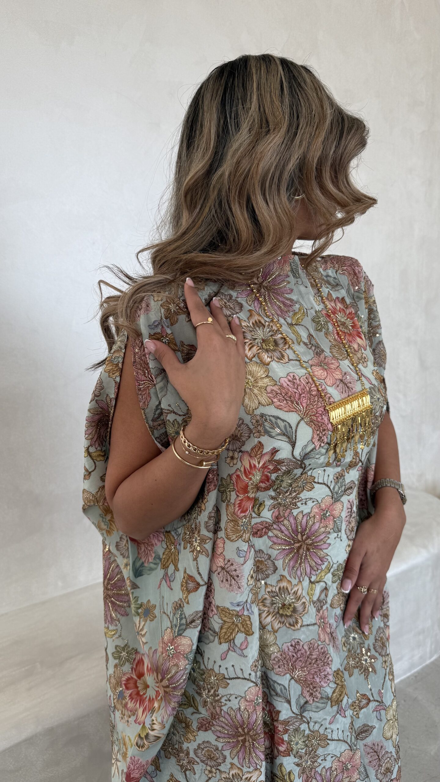 biege jalabya with gold Embroidery
