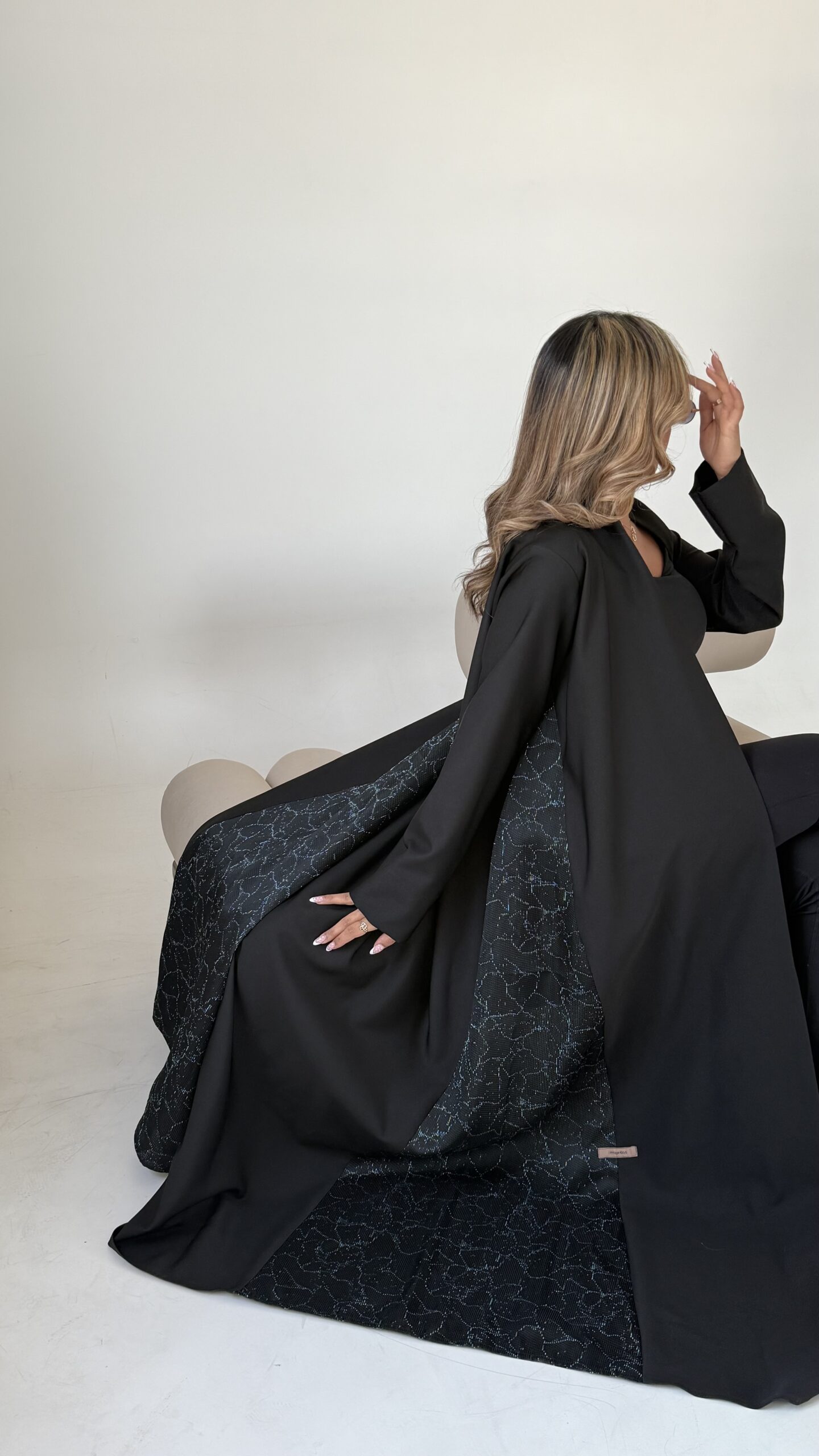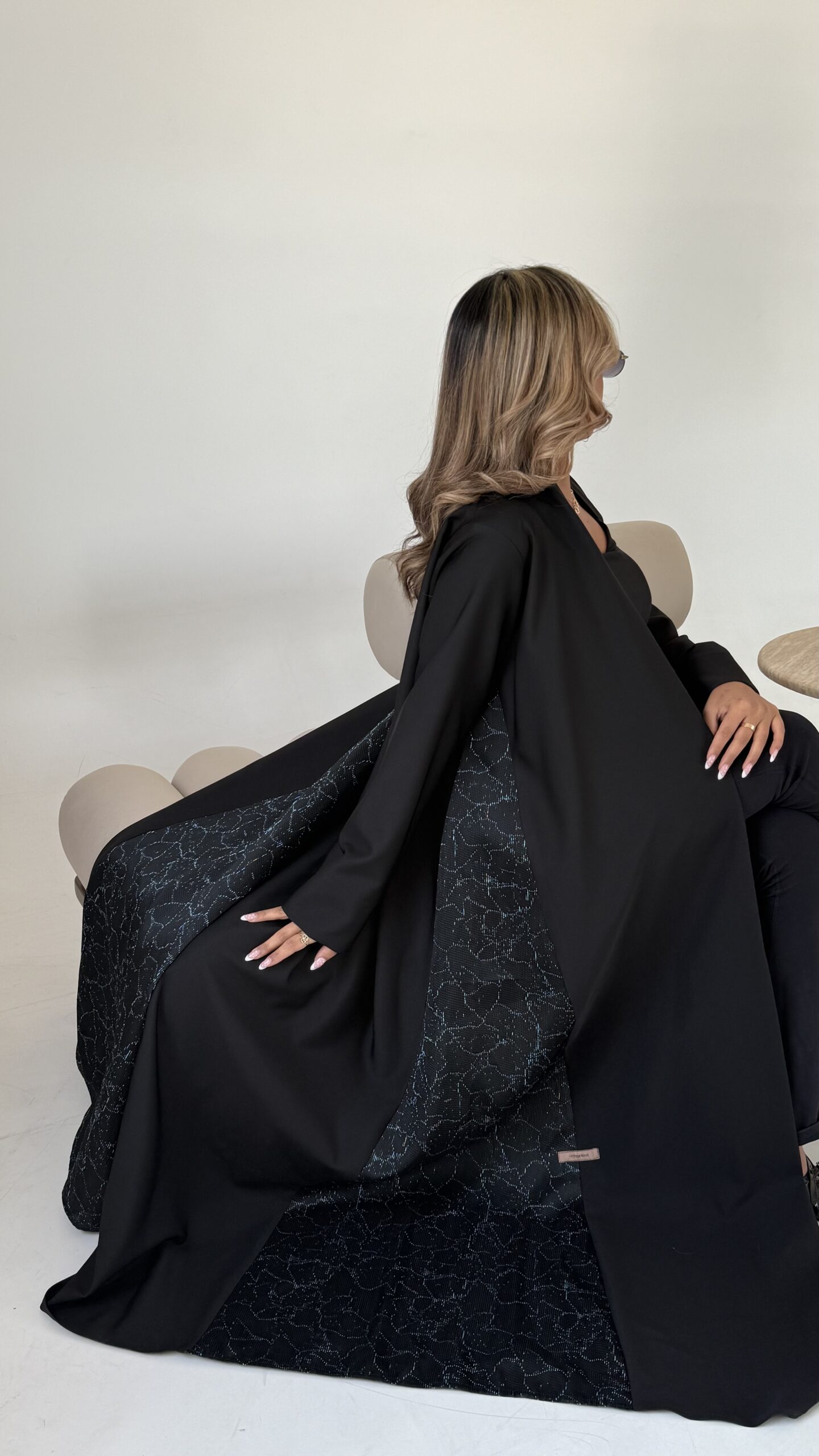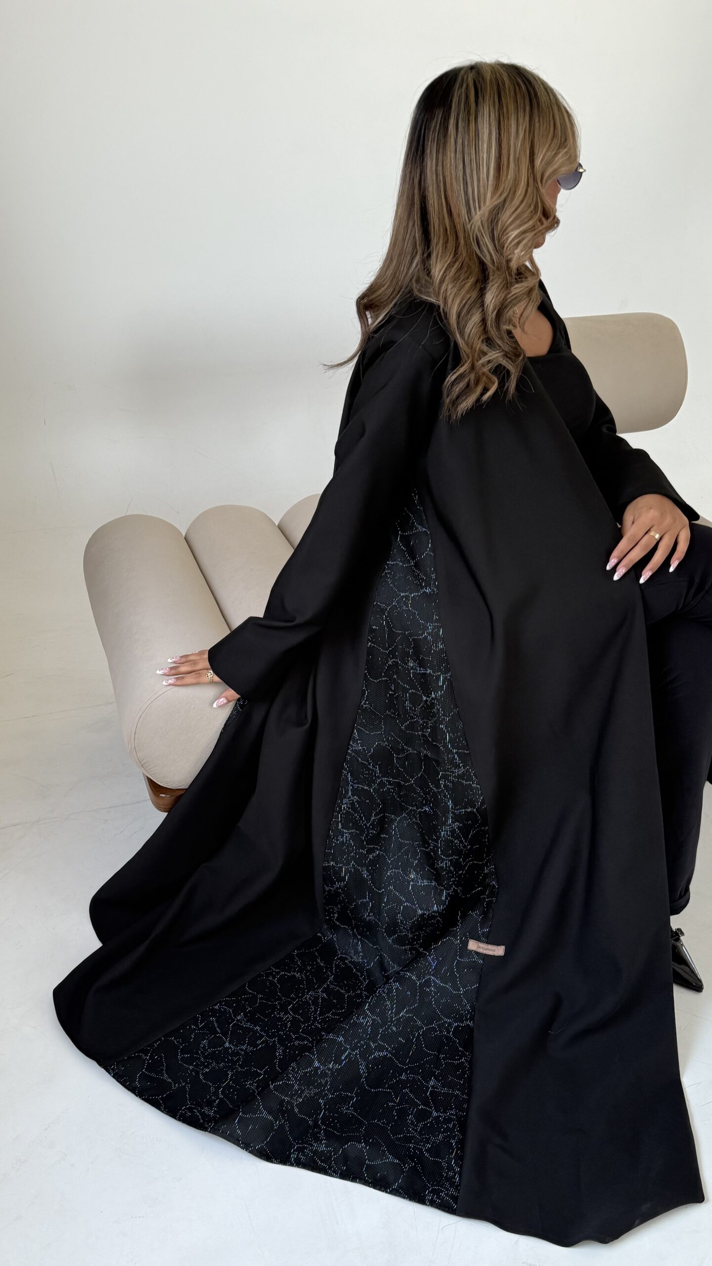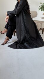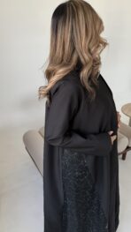 عباه بقماش الكريب الفخم باللون الاسود بأطراف بطبعه عصريه