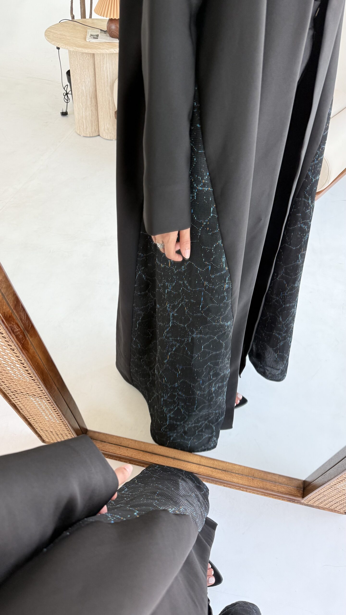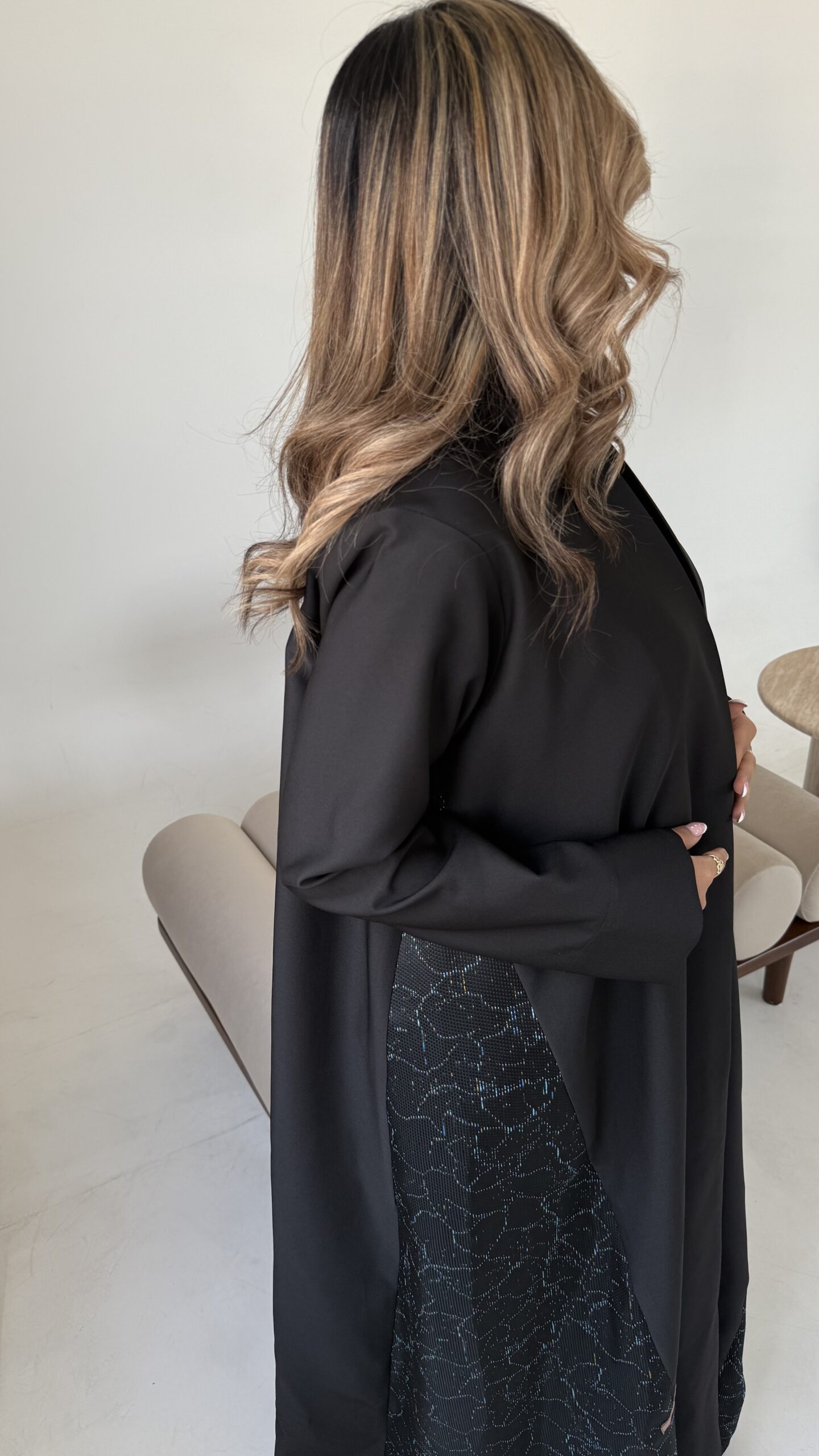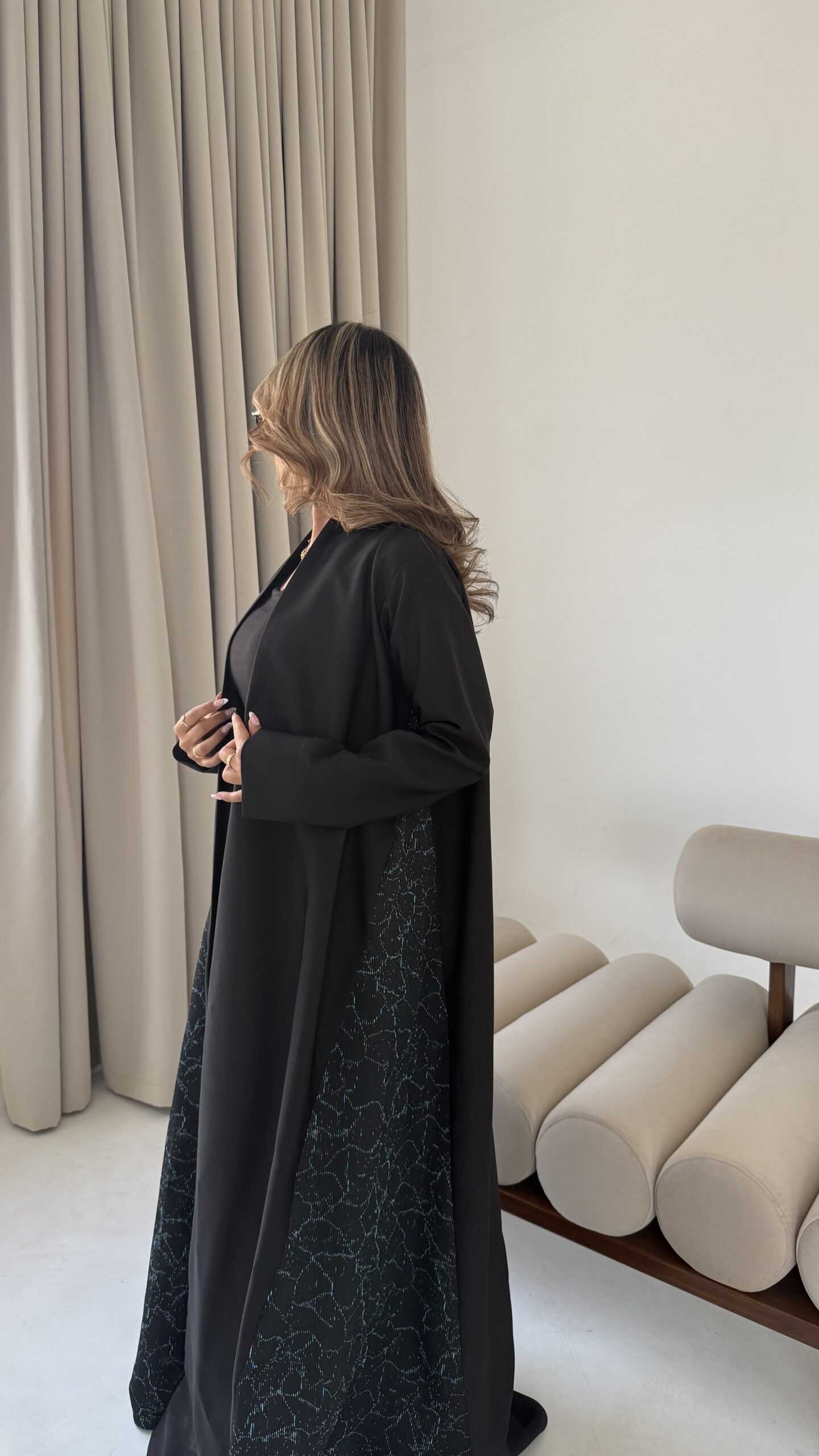 عباه بقماش الكريب الفخم باللون الاسود بأطراف بطبعه عصريه