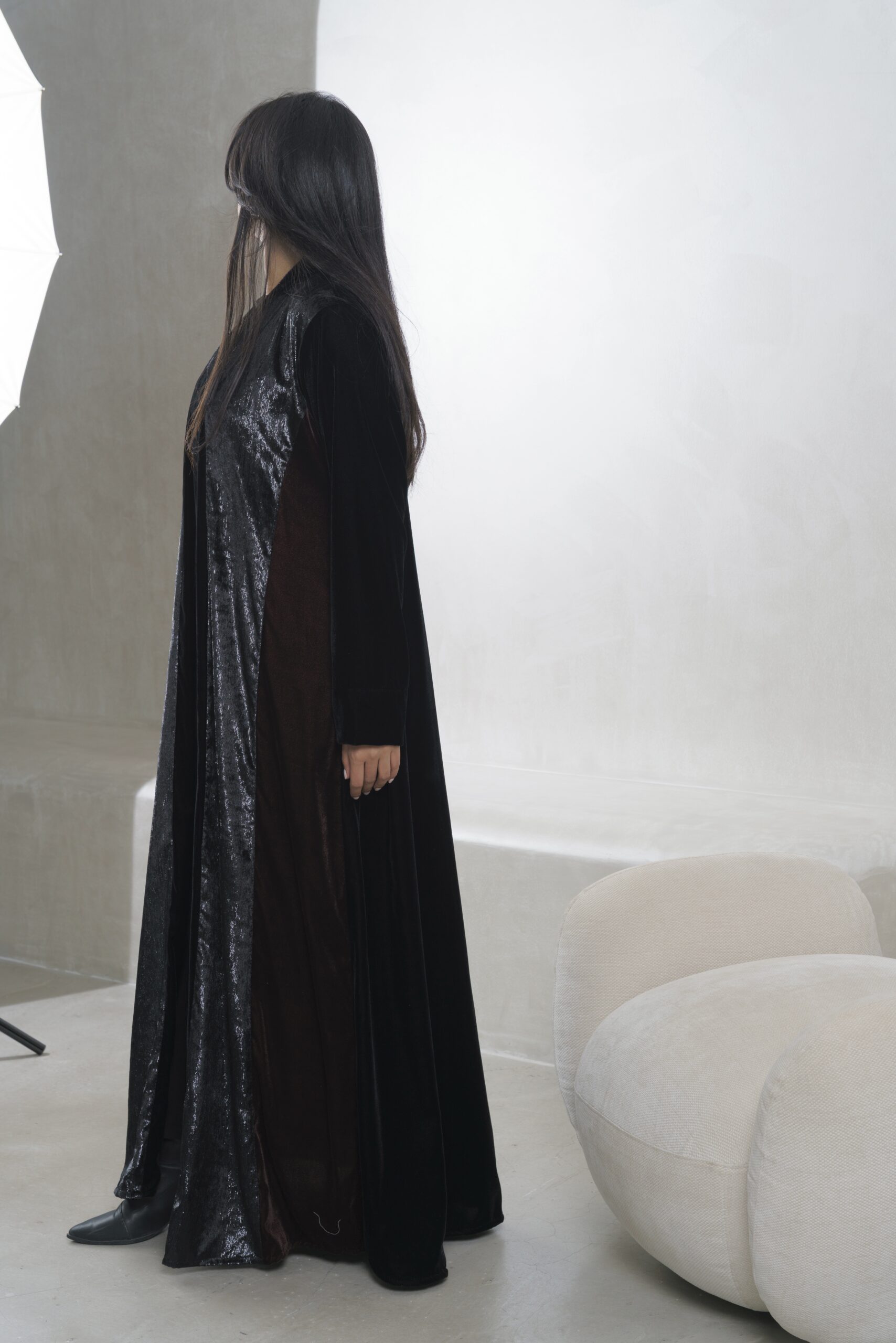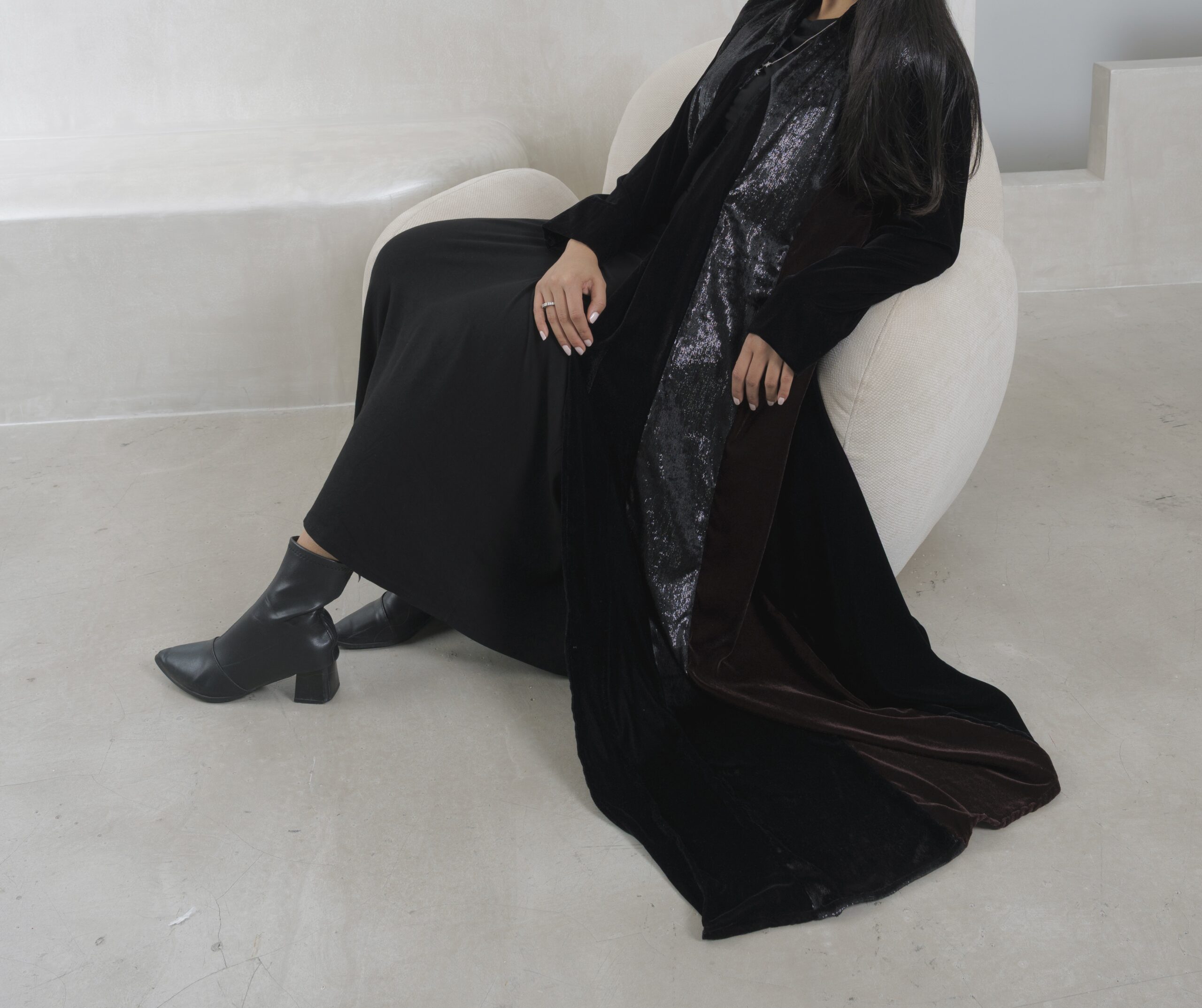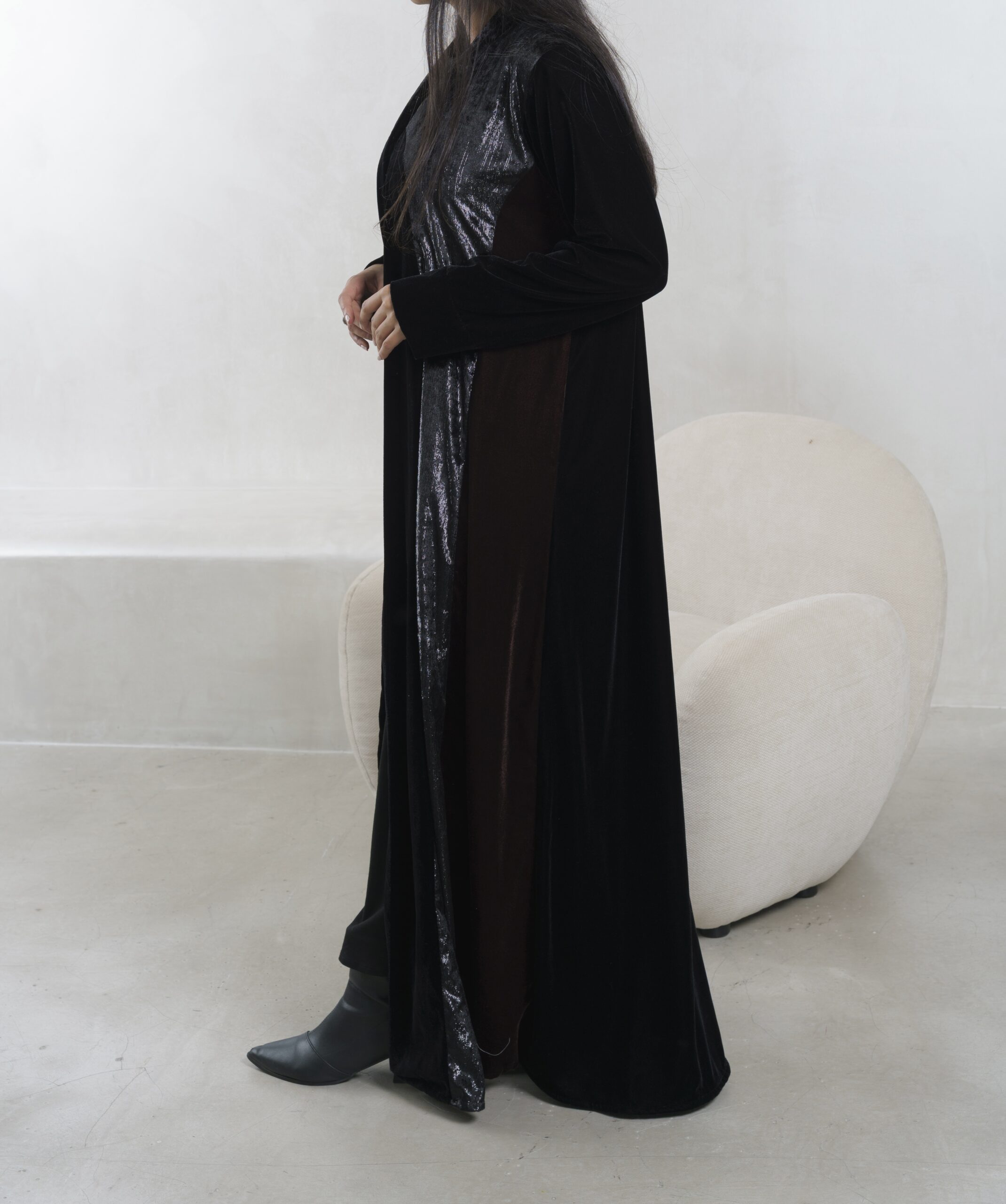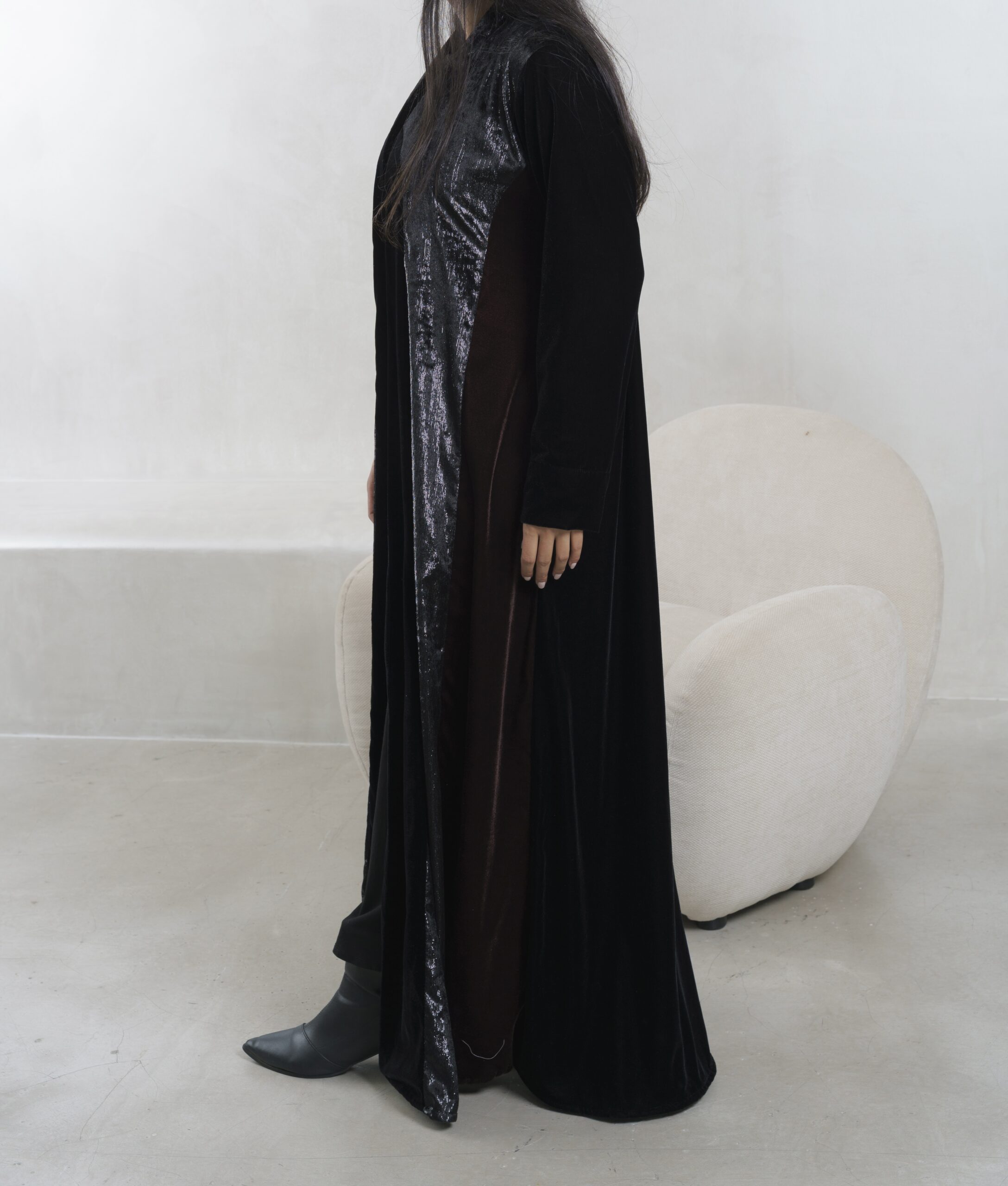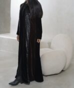 عبـايه عملـيه راقـيه بقمـاش المـخمل باللون الاسود و البني و مخمل ملمع
