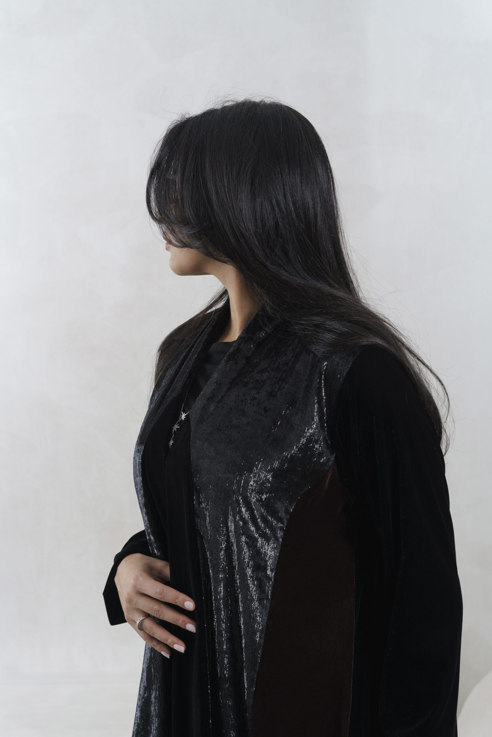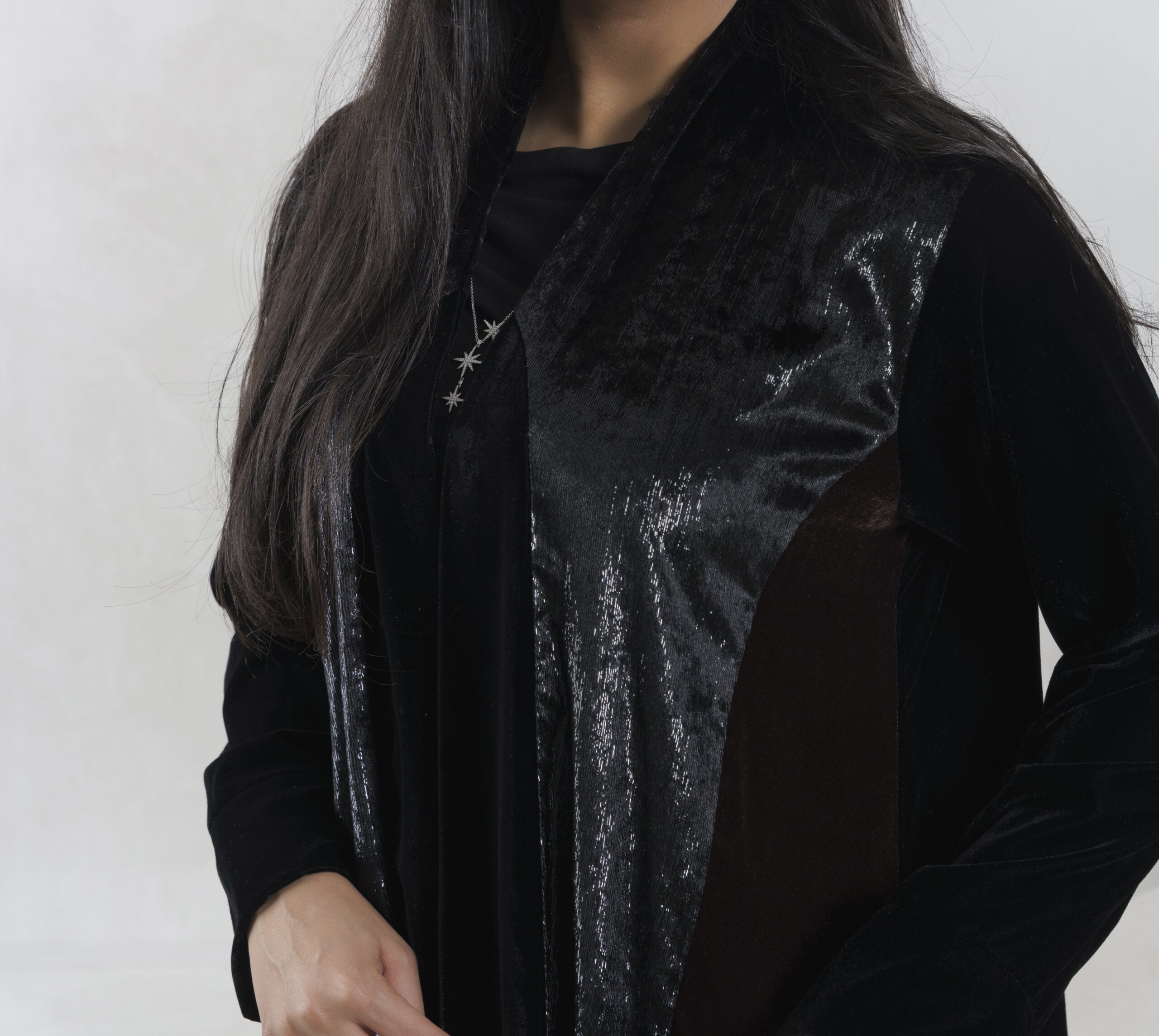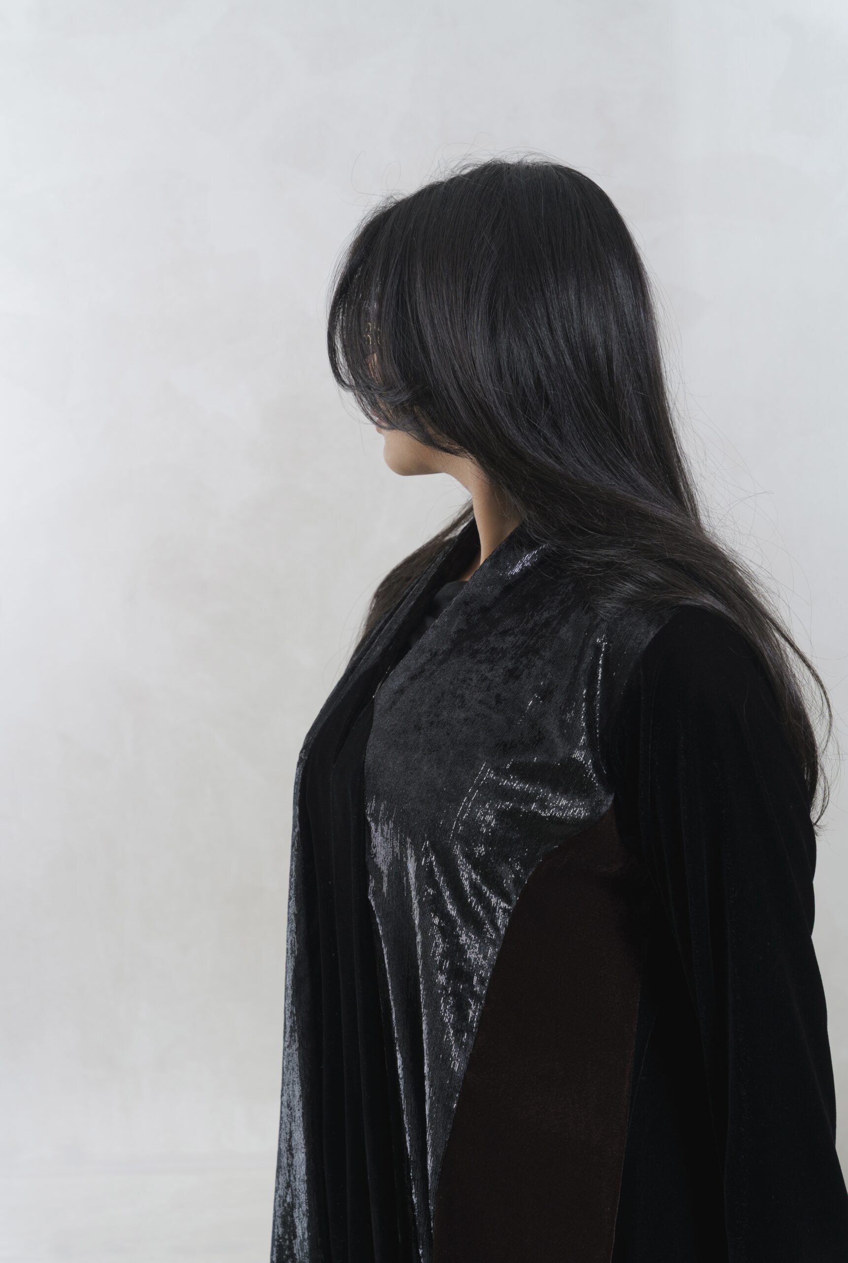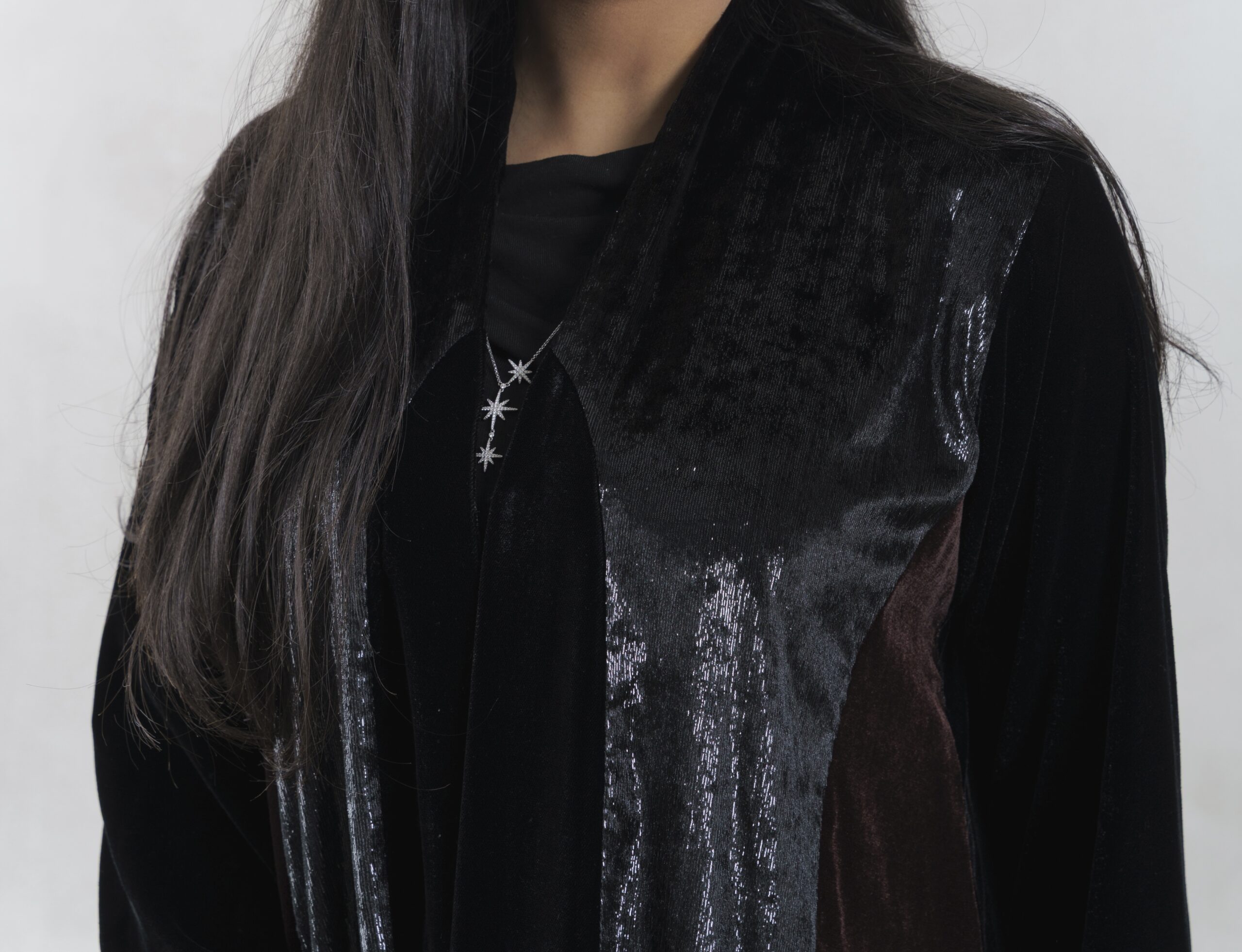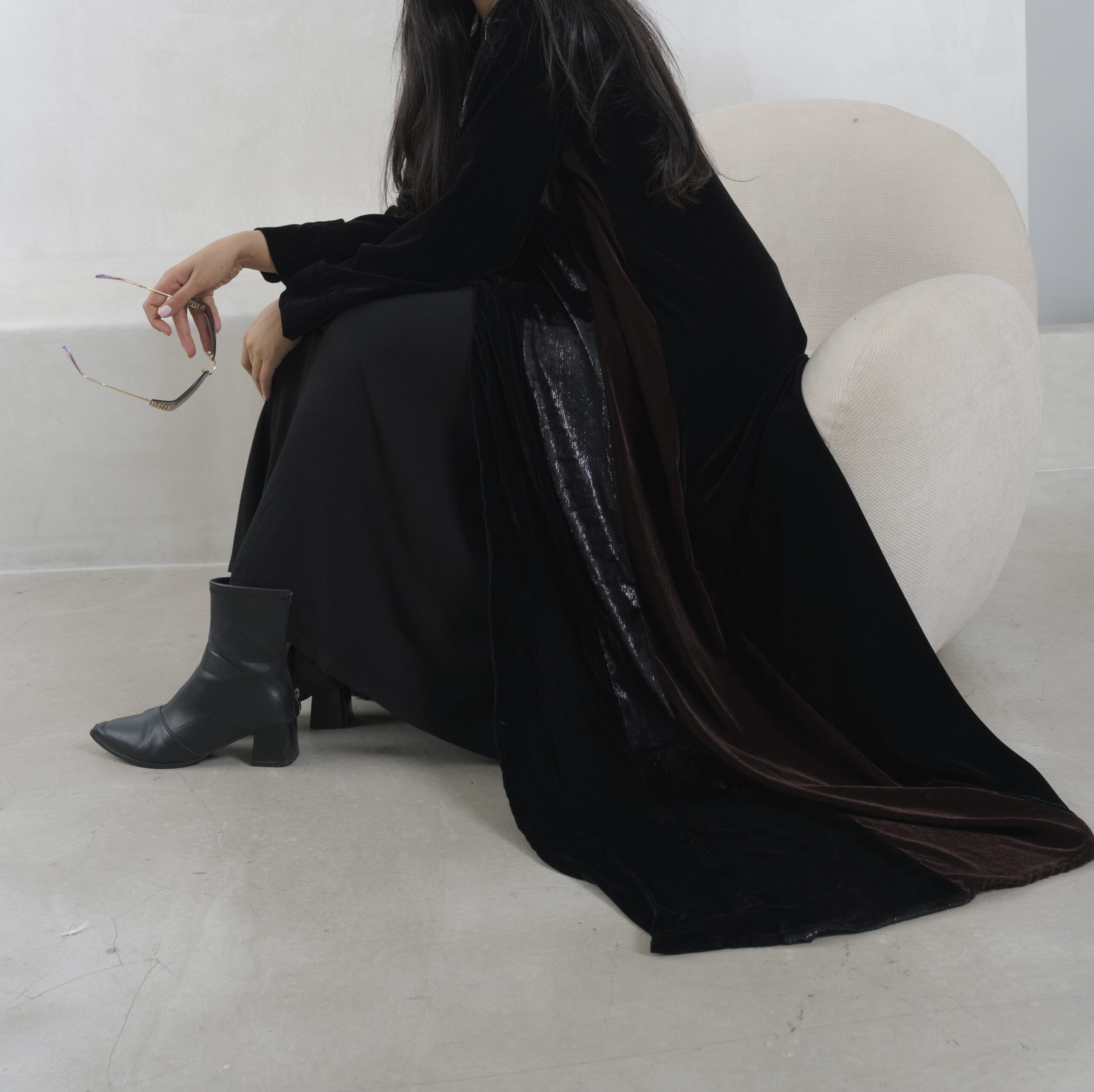 عبـايه عملـيه راقـيه بقمـاش المـخمل باللون الاسود و البني و مخمل ملمع