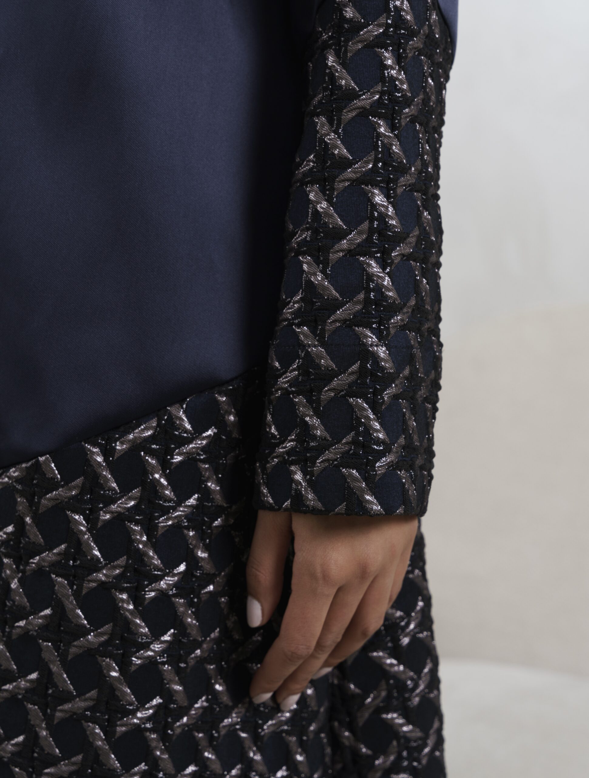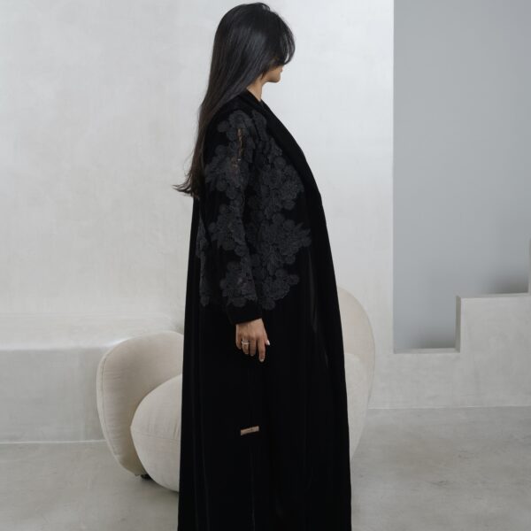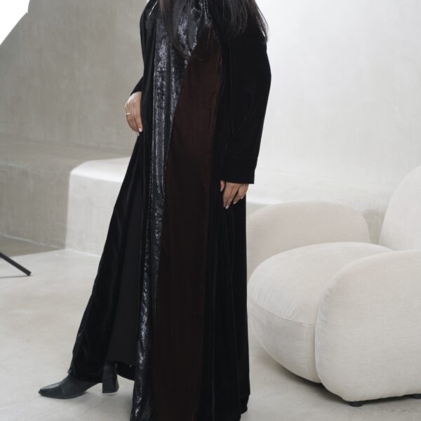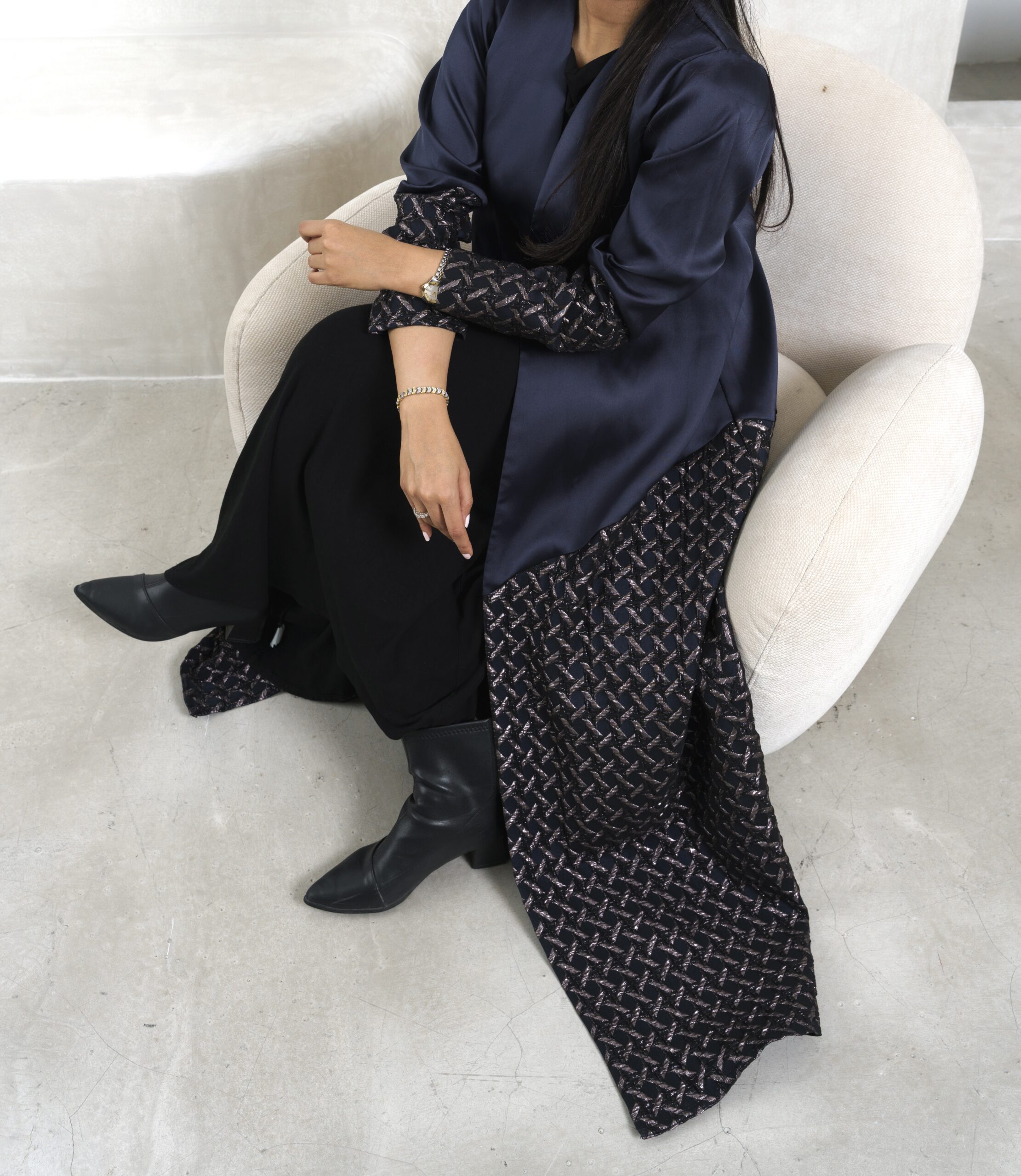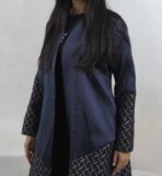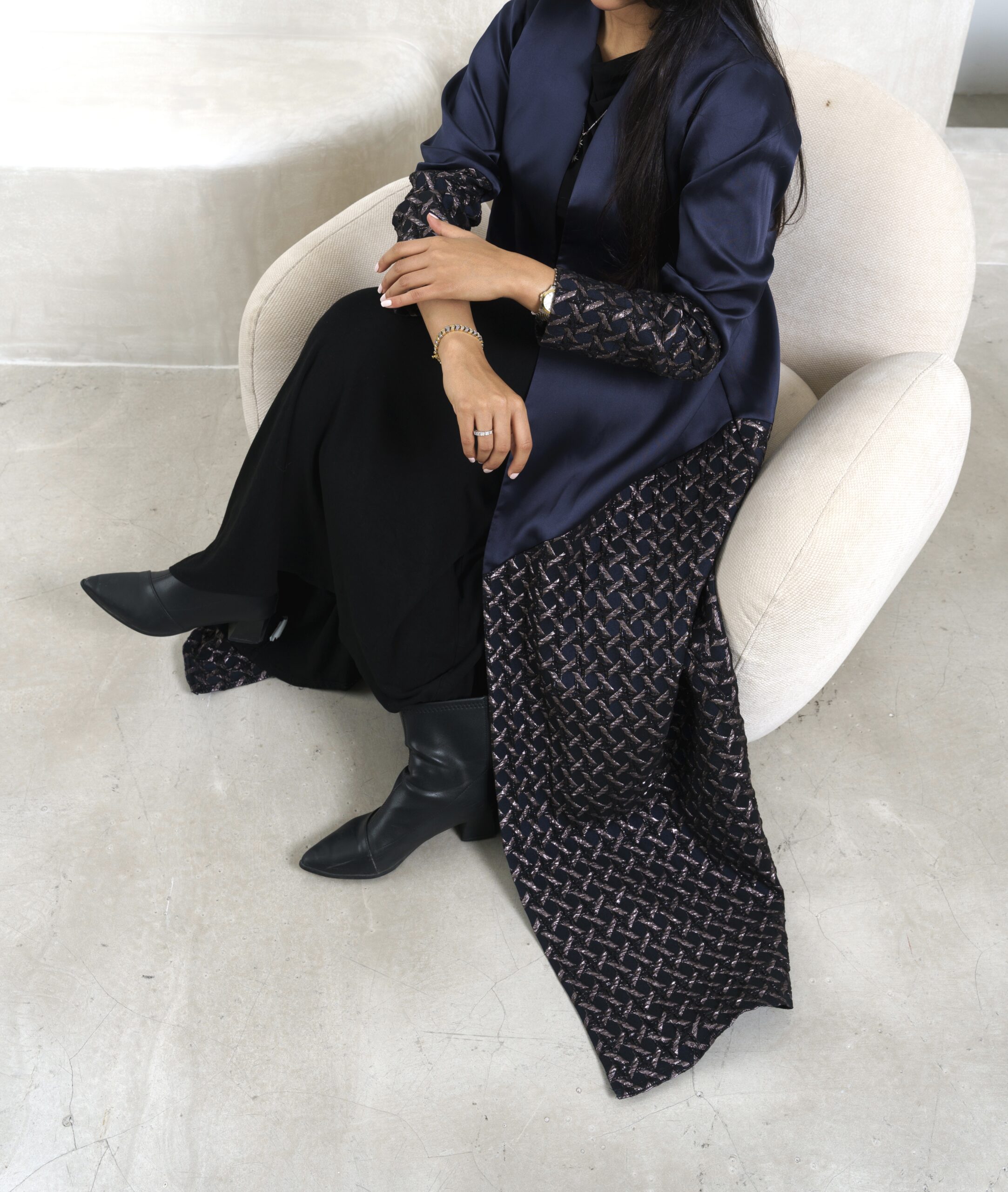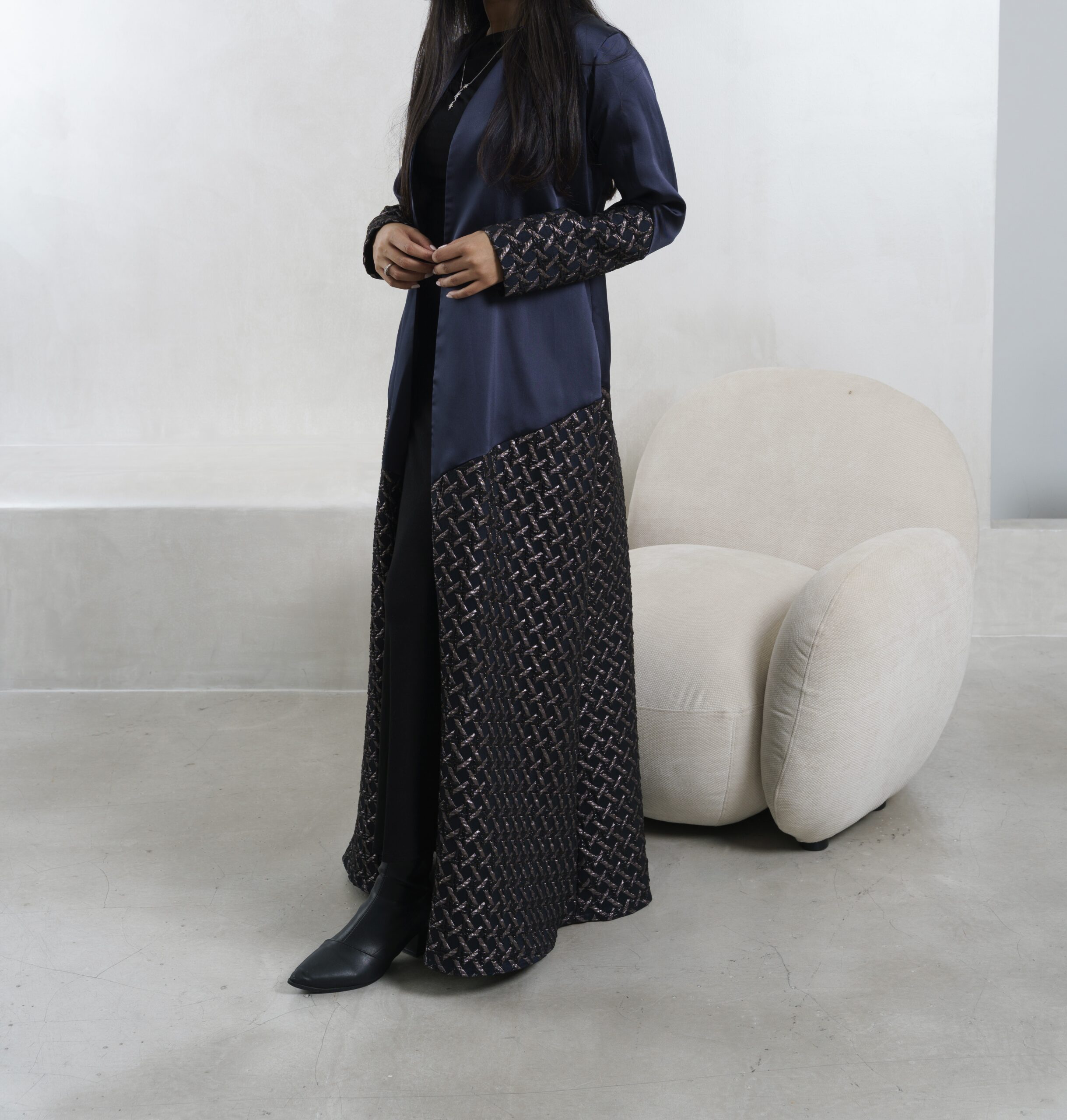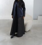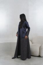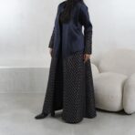 عبـايه عملـيه راقـيه بقمـاش الجـاكارد مع التفته باللون الكحلي